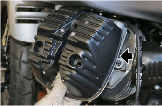- Initially check the valve clearance in the left cylinder, then remove the four fixing screws of the spark plug cover