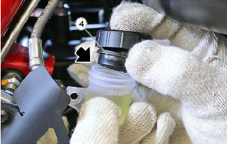 TOPPING UP TO THE "MAX" LEVEL MUST BE CARRIED OUT ONLY WITH NEW PADS. DO NOT TOP UP TO THE "MAX" LEVEL WITH WORN PADS BECAUSE THIS WILL CAUSE FLUID TO LEAK OUT IN THE EVENT OF BRAKE PAD REPLACEMENT.