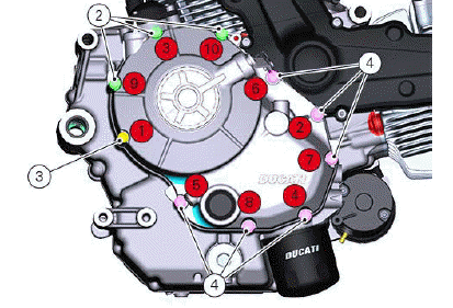 Start the fastening screws (2), (3) and (4) inside the clutch cover.