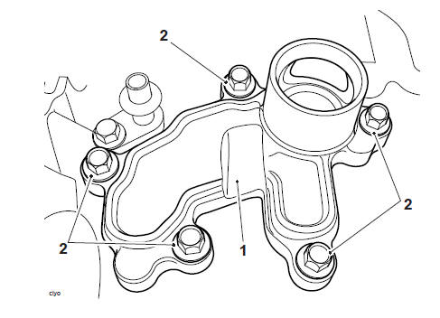 2. Position the coolant manifold to the crankcase, ensuring the locating dowels are correctly positioned.