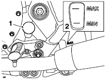 Check the coolant level in the expansion tank. The coolant level must be between the MAX and MIN marks. If the coolant is below the minimum level, the coolant level must be adjusted.
