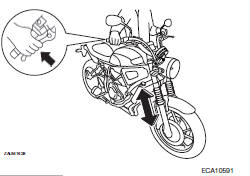 2. While applying the front brake, push down hard on the handlebars several times to check if the front fork compresses and rebounds smoothly.