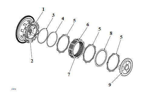 2. For the clutch friction plate thickness, refer to Clutch and Primary Drive.