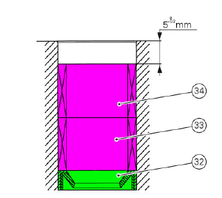 Fit seal ring (32) and the two bearings (33) and (34) respecting the indicated value.