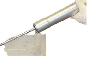- Drain the oil into a container having sufficient capacity, extending the stem several times in order to ensure the oil is drained completely.