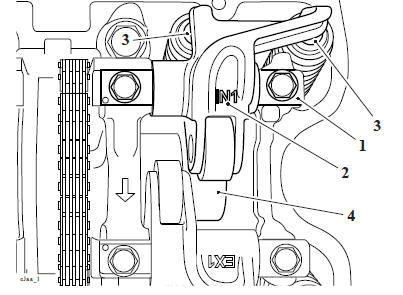 10. Refit the rocker arm and shaft, tighten the bolts in the sequence shown below to 10 Nm.